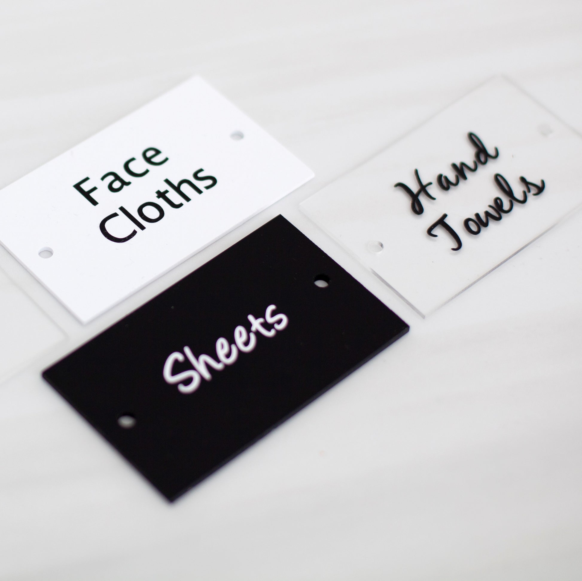 Useful and beautiful our white, black or clear Acrylic tags are handy for labelling storage under the sink, in the linen cupboard, in the pantry or for the toys.