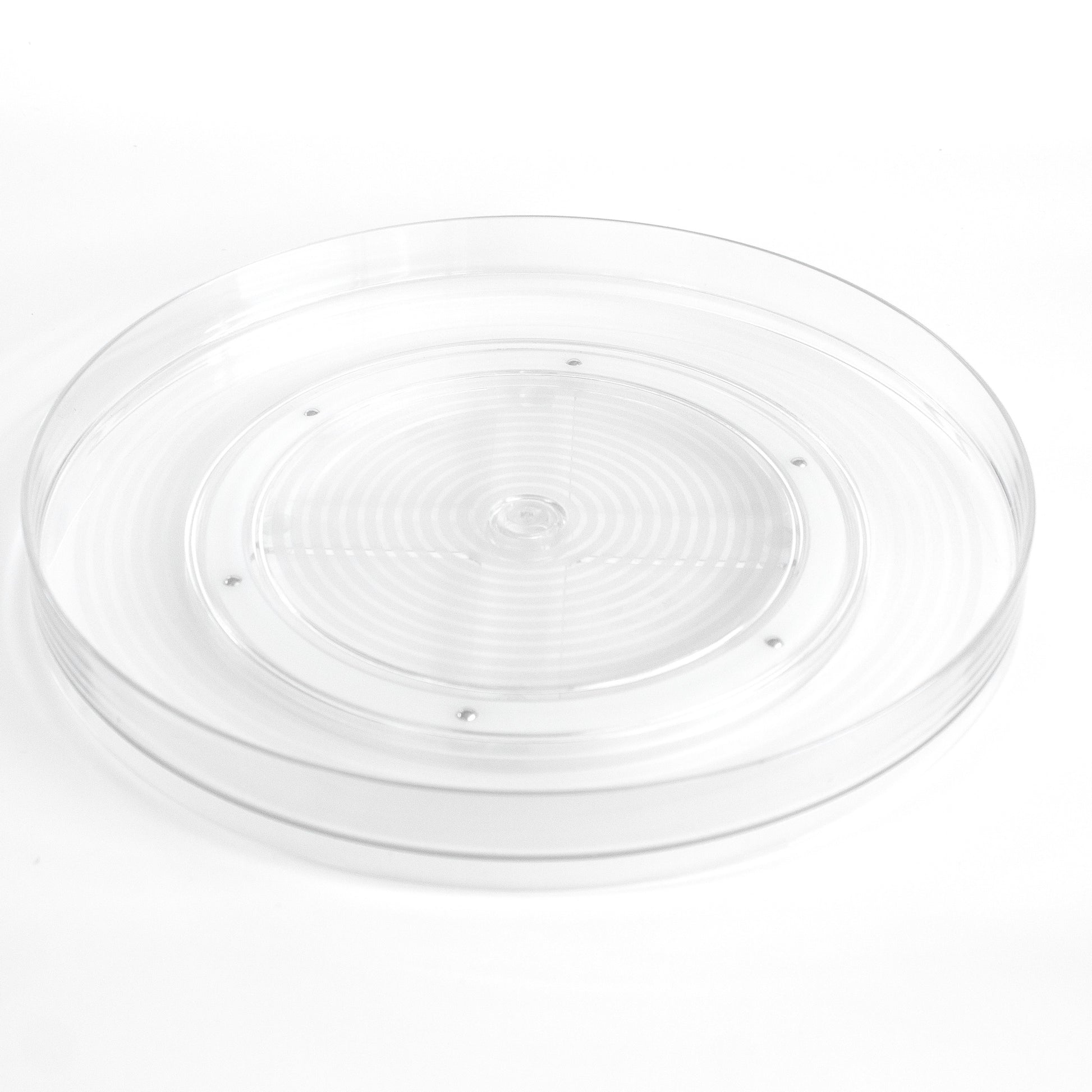 Turntables or Lazy Susan's are an amazing way to access hard to reach corners. It rotates smoothly 360 degrees and importantly has a small lip around the outside to help contain your items when you spin it. Our clear turntables can be used in the pantry and fridge.