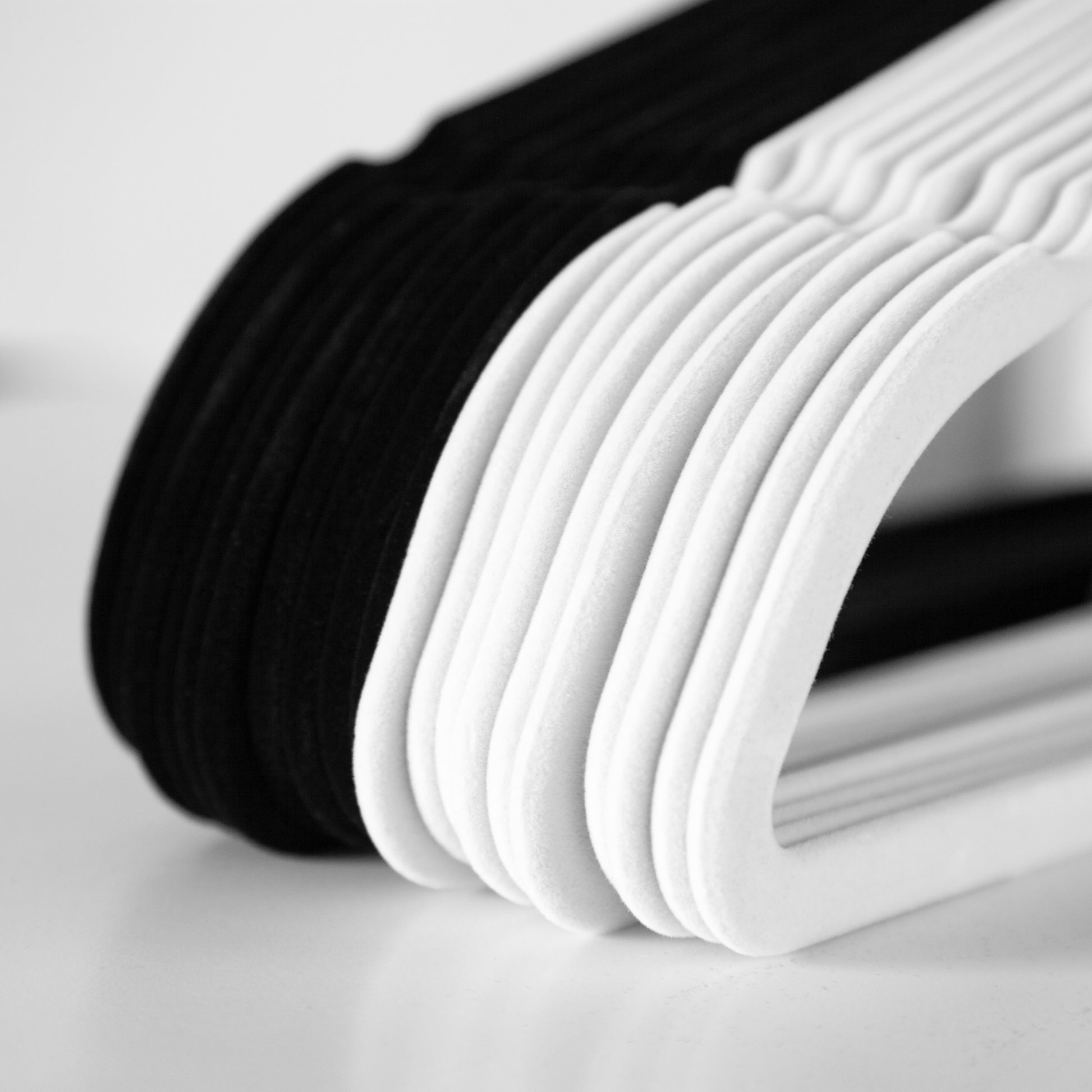 Flocked Slimline hangers help you save space in your wardrobe, are non slip, and have a swivel hook. We stock both cream and black hangers.